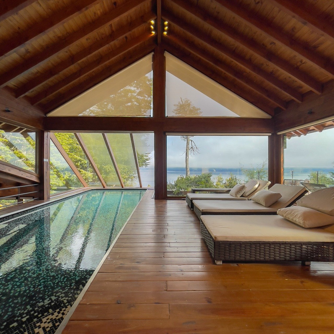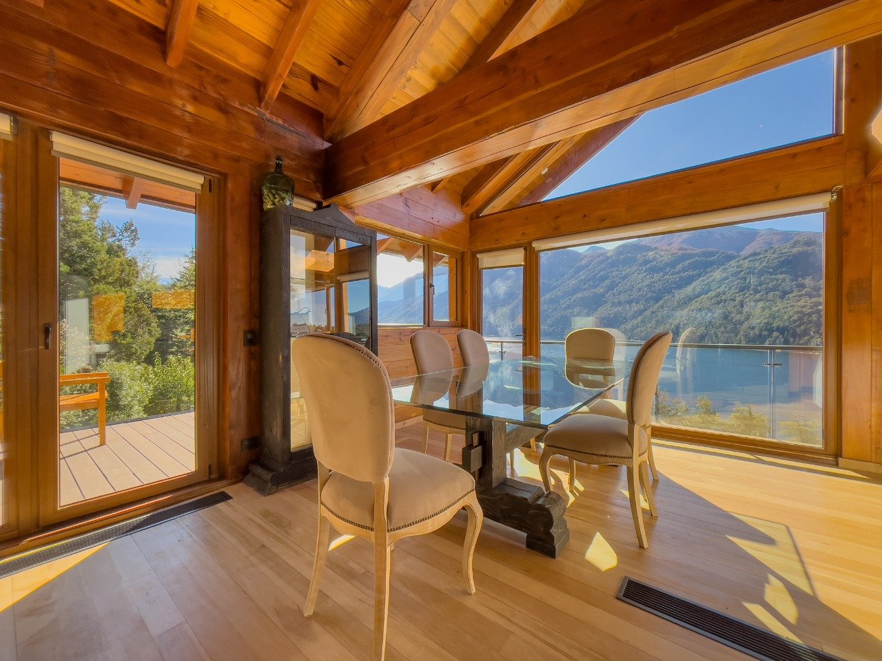 Positioned in a enchanting slope, this 6,350.71 sq. ft. single-family home has the unmatched privilege of overlooking both the Nahuel Huapí Lake and the Correntoso Lake, all from the same standpoint. The day-time area of the house is located above of the night-time area in order to maximize the visual living experience, leading to large leisure areas with spectacular views to the natural scenery.
