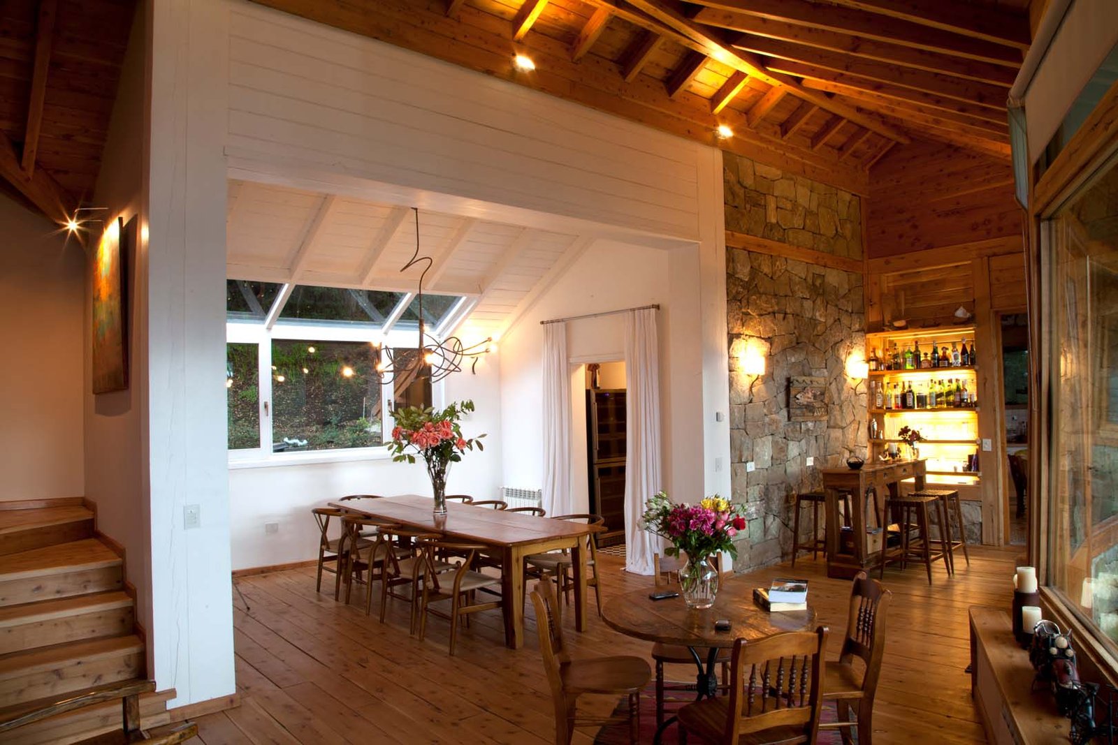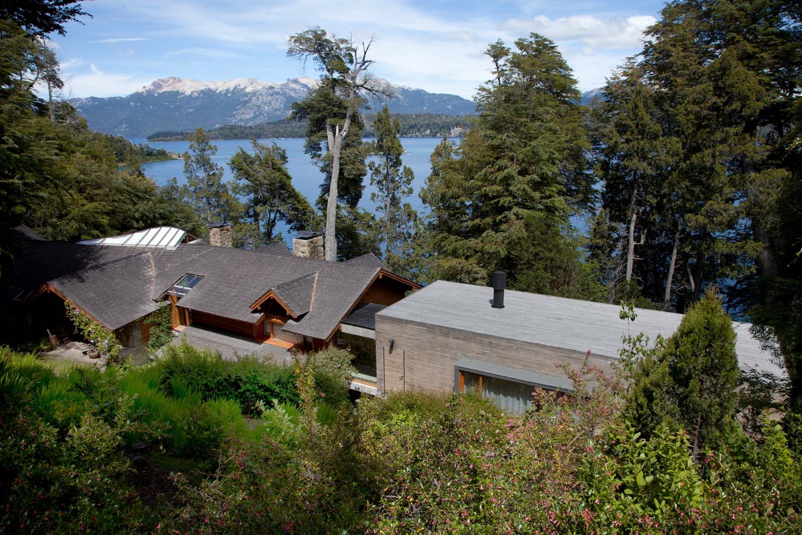 This custom built retreat set on a three acre plot, with 260 feet of Lake Nahuel Huapi waterfront reveals a cosy Patagonian-style residence with its exterior coated in local stone and wood, black tiled roofing, and large picture windows with breath taking views of the lake.