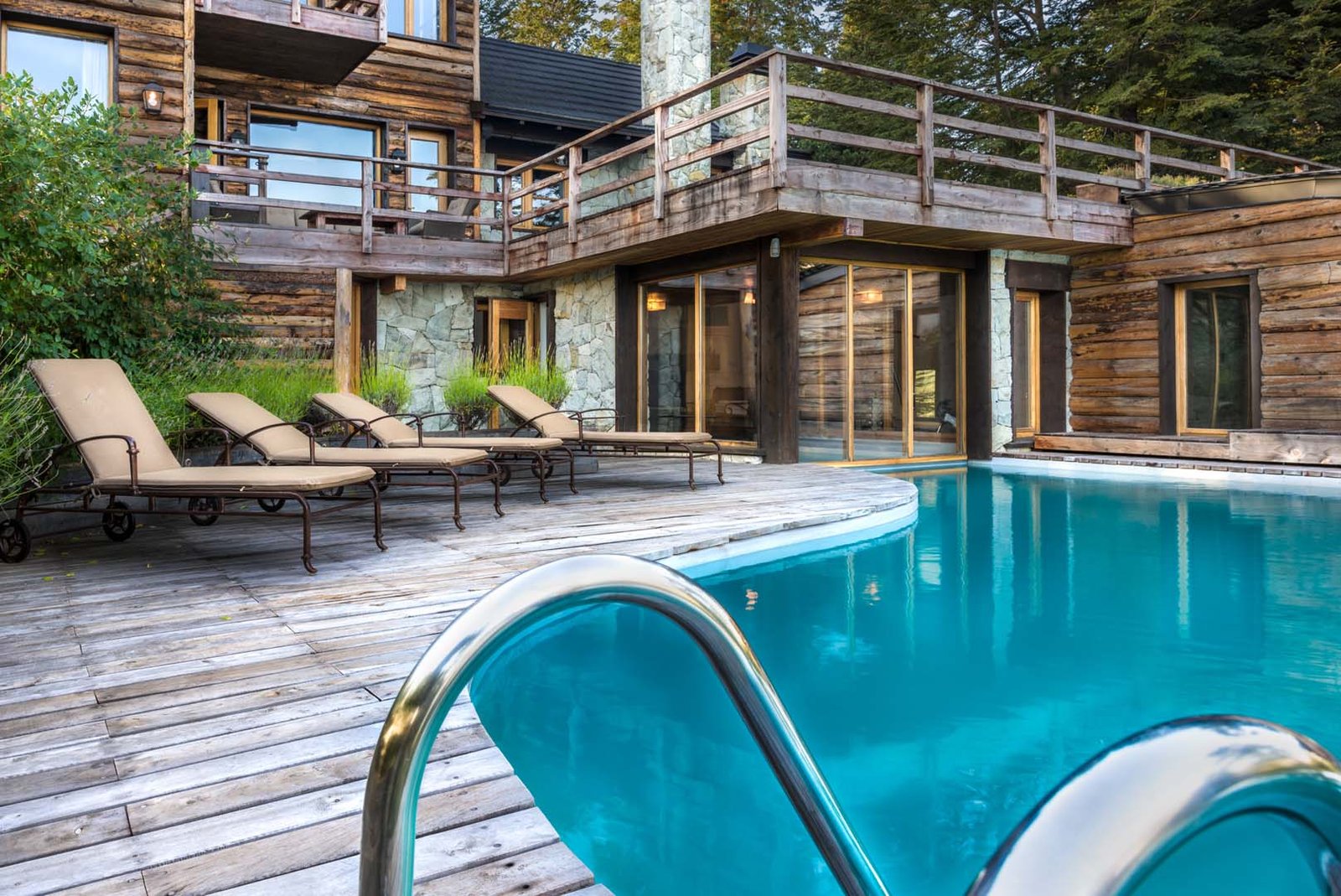 Located on one of Arelauquen G&CC’s most idyllic spots, this spectacular property consists of a 7,642.38 sq. ft. house organized in three stories and entirely covered with local cypress wood and stone.