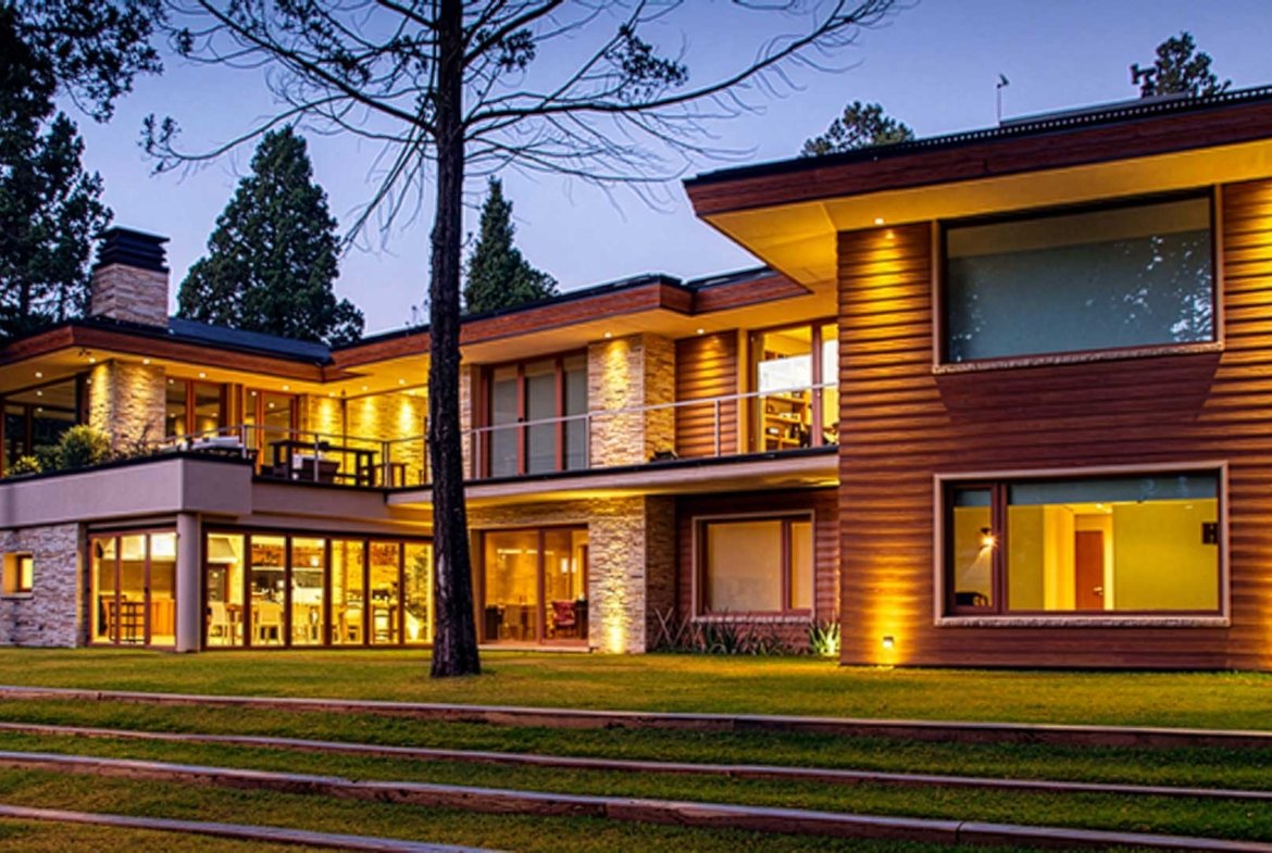 Seekers of modernity and tranquility will be delighted by this high end 7,534.8 sq. ft home on a 35,768.5 sq. ft. lot in Arelauquen Golf & Country Club, surrounded by mountains, forests, and exquisite residential properties. The house has two stories; accessing through the main entrance to a reception hall, we arrive to a spacious living room with a cosy fireplace and a terrace with breath taking views of Cerro Catedral. Adjacent on the same level there is a dining room suitable for twelve guests.